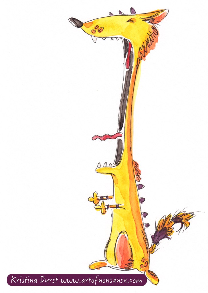 Well so, the old cheap watercolours seem to be working better (more smooth and vibrant) than my new expensive investment, and I’m not feeling particularly thrilled about that. In any case, practise practise practise is my motto these days. Getting used to using different mediums in new ways can be challenging and tricky— and apparently fun lol— so I’m trying to embrace that and see what happens while stifling my perfectionism en-route (especially tricky). Anyway, I’ll show you Yarnie’s book page when it’s complete, but for now here’s a teaser… I hope you enjoy yawning with Yarnie today!