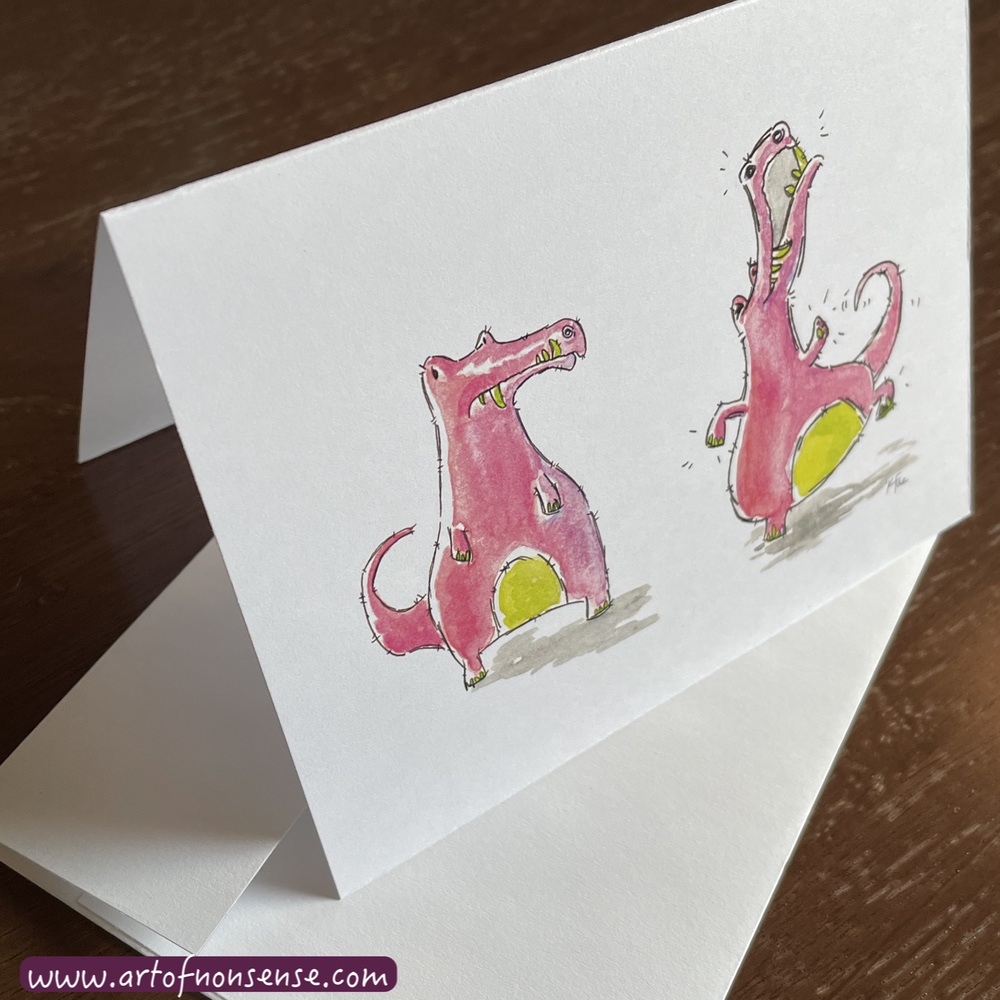 We also introduced another new product into our line: Art of Nonsense Greeting Cards! First up we have the Dancing Dino, who’s sure to bring delight to any welcoming recipient. And in the name of the season, we have our West Coast Christmas Cards featuring a wildly enthusiastic rider on an orca, hauling a sleigh above the roaring ocean waves!