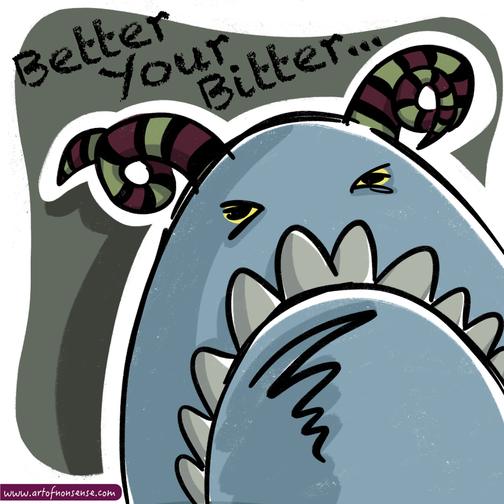 The Grim Bitter sneaked into my home last week, and asked me, please, to play. The Grim, you should know, is the gnarliest soul, and not in a cool ol’ way. I know not whether the Grim is more bitter than grim, or more grim than the bitterest thing, But when I denied his request, what did manifest, was nothing that I was expecting! He sat down on his rump, with a roar and a thump, atop all of my chores and to-dos, His face in a frown, he crossed his arms proud, and when I asked him to leave— he refused! “I’ve got things to do, oh why won’t you move!?” but my cries only pleased him much more, “Fine then, I’LL go—” and I tried, but oh no, where he sat, he was blocking the door! So I huffed and I puffed and I shoved and I snuffed until I felt completely enraged, Then I chased him about with a broom and a shout, until my whole house— rearranged! On this went for a week, without food, drink or sleep, to the point that I gave in and sat, And together we groaned, and we pouted and moaned, ’til at last we had no more to add. Then when we were done, he said, “Thanks for the fun!” and went off on his unpleasant way… So if the Grim Bitter calls, it may be wise not to stall— but instead to appease him and play!